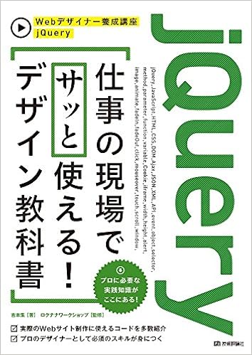 jQuery 仕事の現場でサッと使える! デザイン教科書 (Webデザイナー養成講座) (日本語) 大型本 – 2015/4/21 - Webデザイナー養成講座シリーズは、プロのデザイナーとして仕事をするうえで、必須のスキルを身につけるためのシリーズです。本書では、jQueryをこれから学習する初級者のために、jQueryについての基本的な知識、記述方法、具体的な利用例などを解説します。「JavaScriptを知らなくてもコードの書き換えだけでjQueryが使える」「実際のWebサイト制作に使えるコードを多数紹介」「かんたんな文法解説も行うので、コードの内容もよくわかる」「仕事で使える知識であることを意識した内容とする」といった点が特徴です。